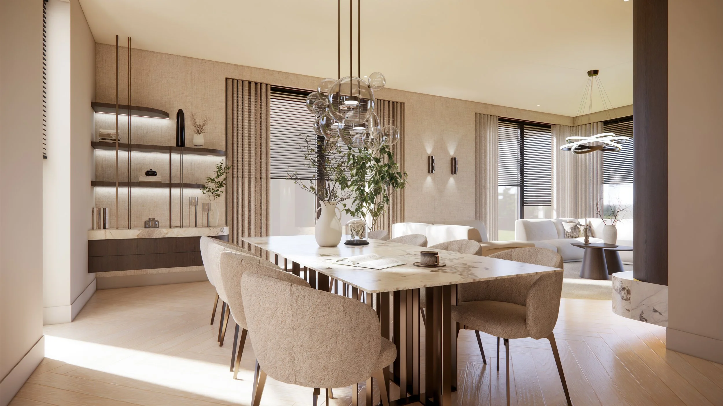 Een luxe interieur waarin materialisatie, indeling en detail samenkomen in een verfijnd en tijdloos geheel.